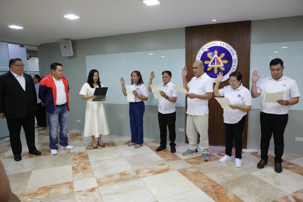 Saksi sa panunumpa sina QCPC Sectoral Representative Brian Lu at Barangay and Community Relations Department head Ricky Corpuz.
