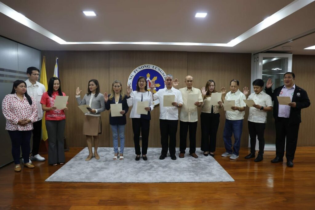 Nanguna sa oath taking ceremony si Mayor Joy Belmonte saksi sina Vice Mayor Gian Sotto, Majority Floor Leader Doray Delarmente, at Barangay Community Relations Department head Ricky Corpuz.