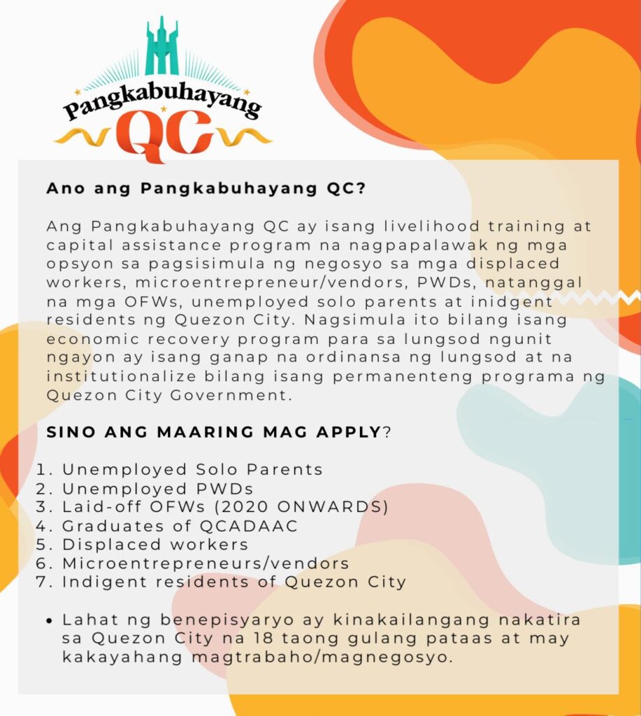 Muling tumatanggap na ng aplikante para sa ating livelihood at capital assistance program para sa mga sumusunod na QCitizens: