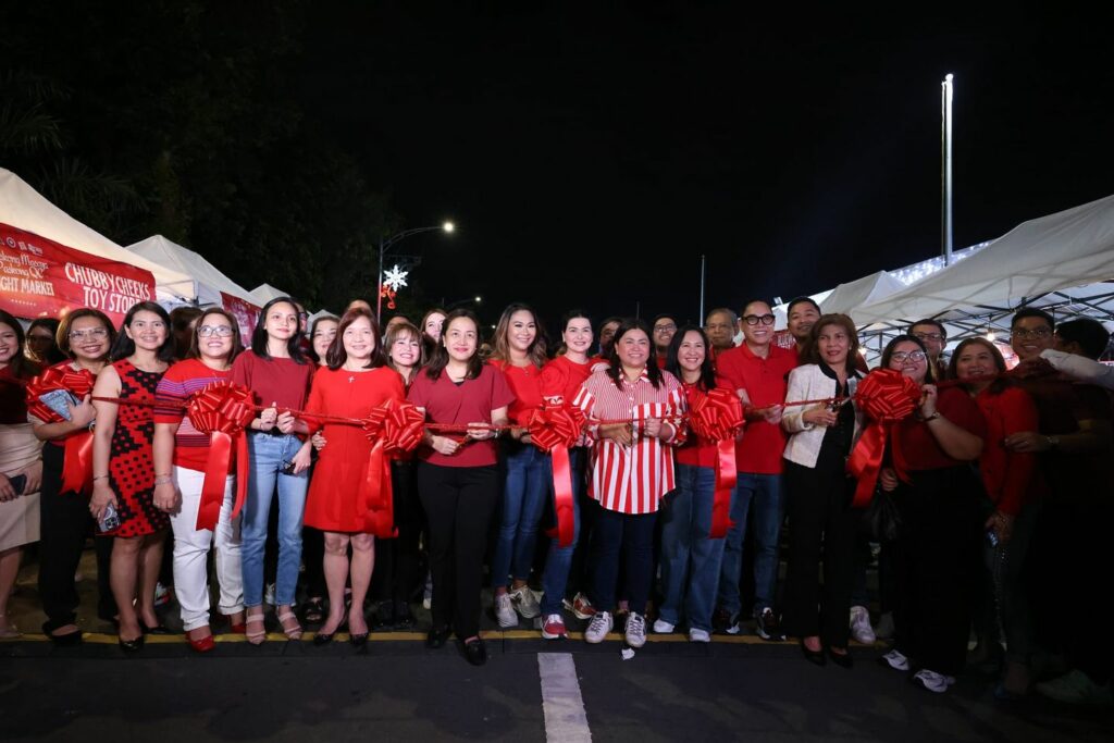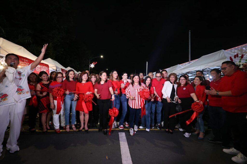 Pinangunahan ni Mayor Joy Belmonte ang Ribbon Cutting, kasama si QC Small Business and Cooperatives Development Promotions head, Mona Celine Yap, department heads, at mga city councilors na dumalo rin sa Christmas Tree Lighting.