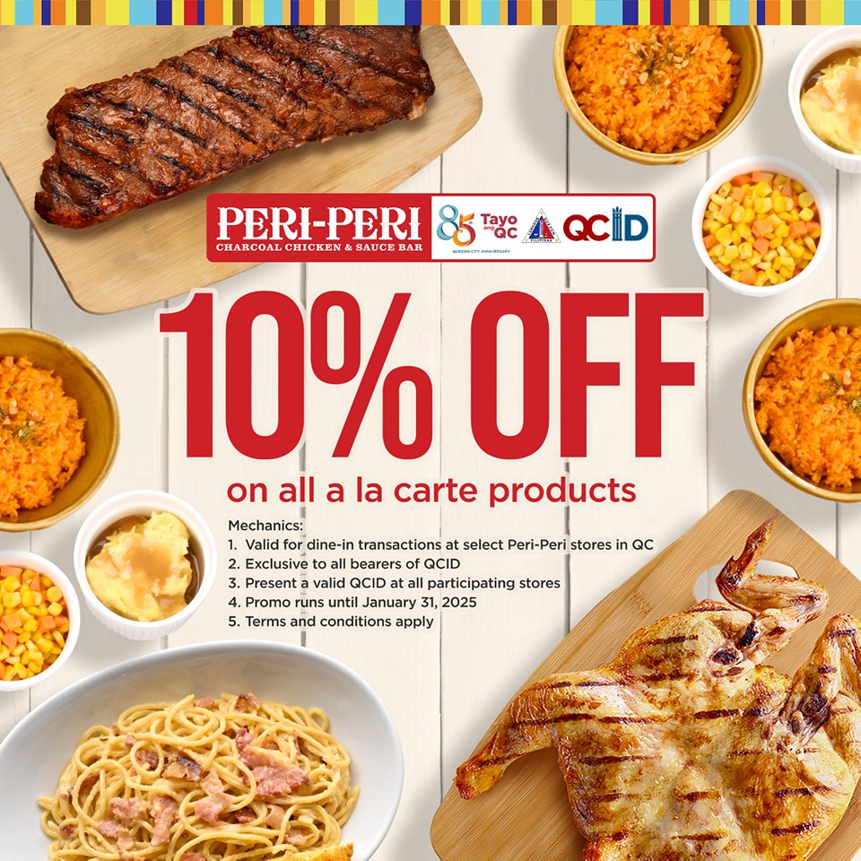 Peri-Peri is offering a 10% discount on à la carte orders with your QCID!