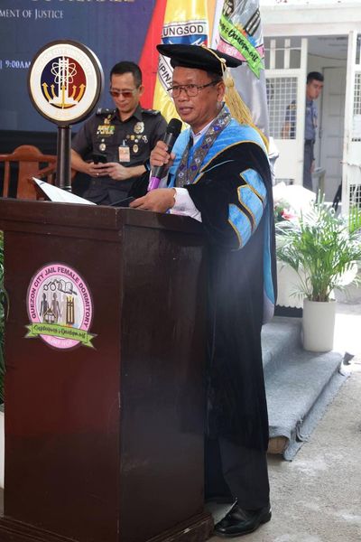 Kasama ni Mayor Joy sa graduation rites sina Department of Justice Usec. Margarita Gutierrez, Councilor Ellie Juan, QCU President Tere Atienza, GAD TWG head Janete Oviedo, QCJFD Warden JCInsp. Lourvina Abrazado, BJMP-NCR Regional Director JCSupt. Clint Tangeres, JInsp. Concepcion Bacolod, at JInsp. Gerardo Caminoc.