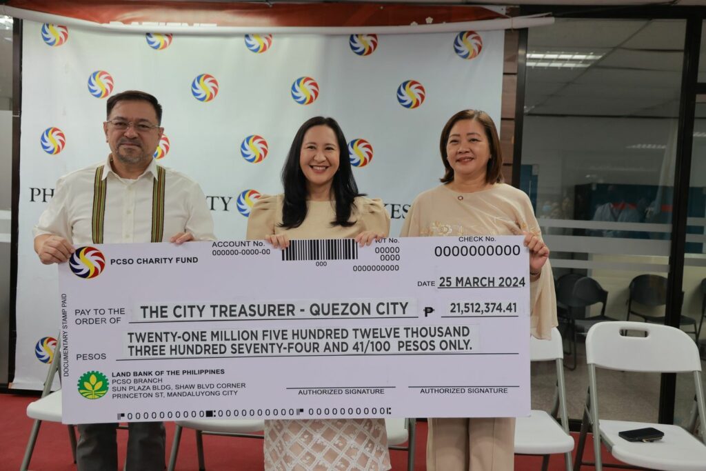 Personal din na tinanggap ng alkalde ang tseke mula sa PCSO na nalikom mula sa Lotto and Small Town Lottery (STL) shares na may halagang ₱21,512,374.41.