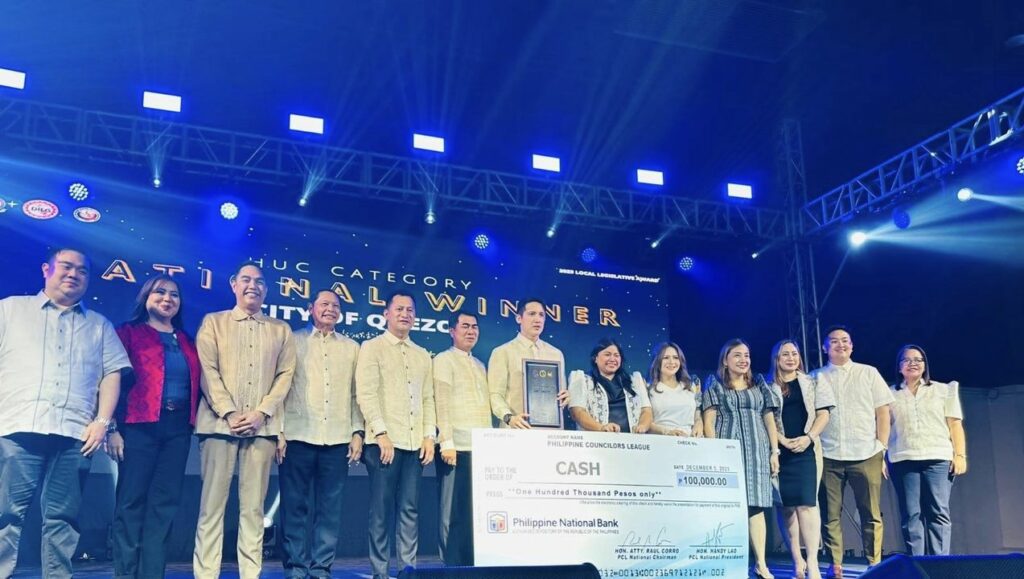 Itinanghal bilang National Winner sa Highly Urbanized Cities category ang QC Council sa pangunguna nina Vice Mayor and presiding officer Gian Sotto at Majority Floor Leader Doray Delarmente.