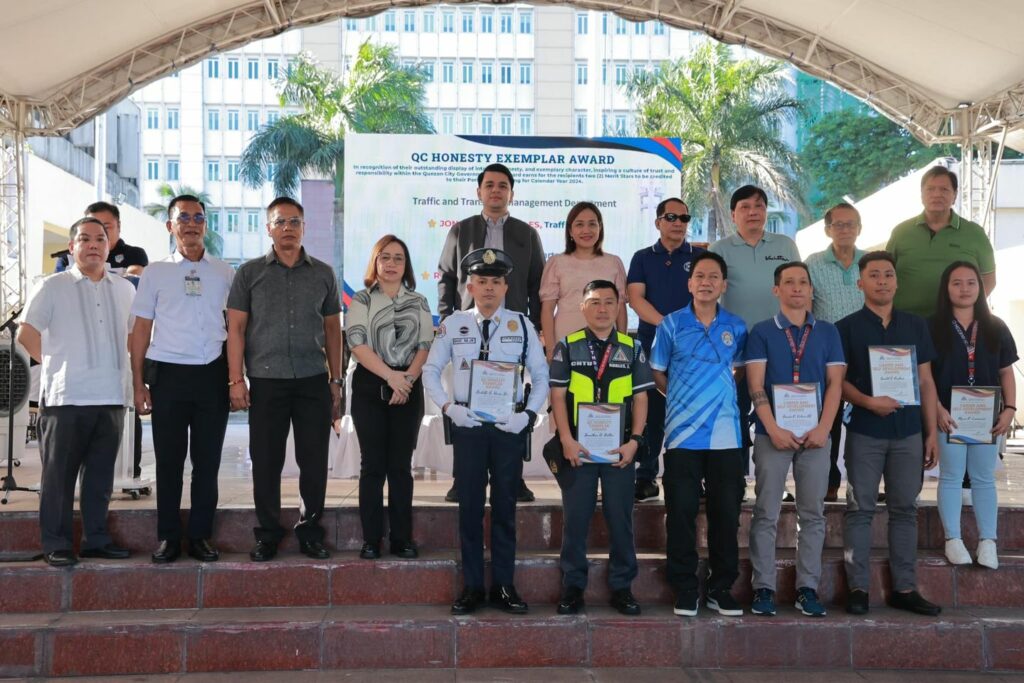 Pinarangalan ng QC Honesty Exemplar Award ang mga natatanging kawani na sina Jonathan Robles ng Traffic and Transport Management Department at Rodolfo Novio, Jr. ng City General Services Department para sa kanilang katapatan na ipinamalas sa trabaho.