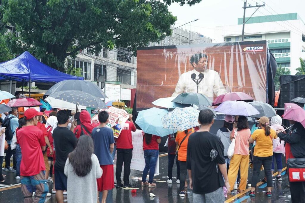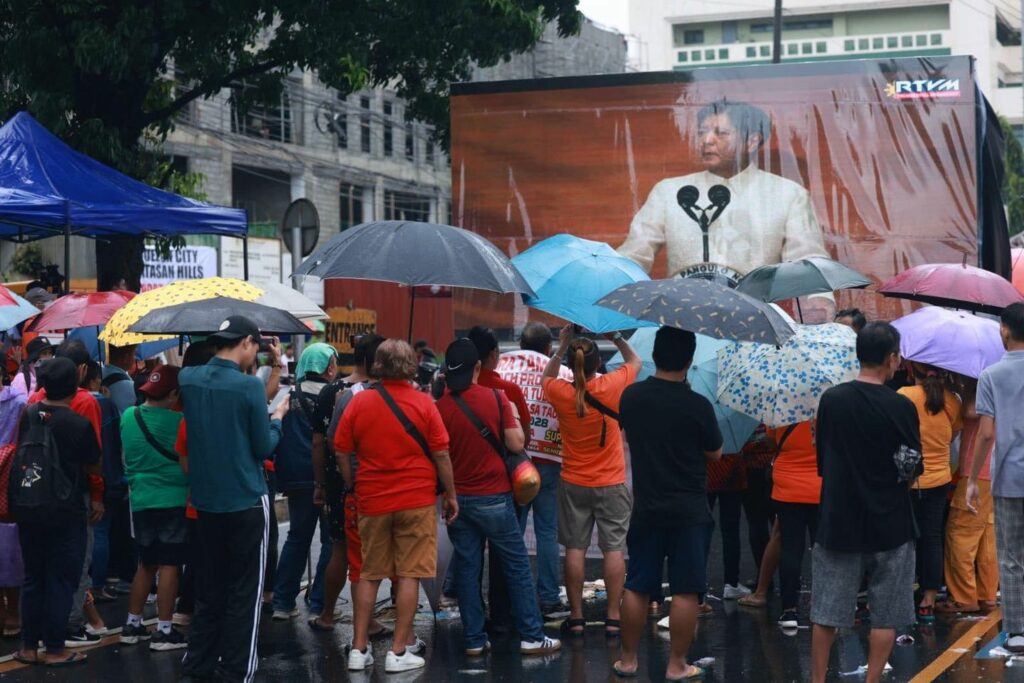 Malakas man ang buhos ng ulan, pinili pa rin ng iba nating kababayan na panoorin ang ikatlong State of the Nation Address (SONA) ni Pangulong Ferdinand “Bongbong” Marcos Jr. sa giant led wall sa Commonwealth Avenue.