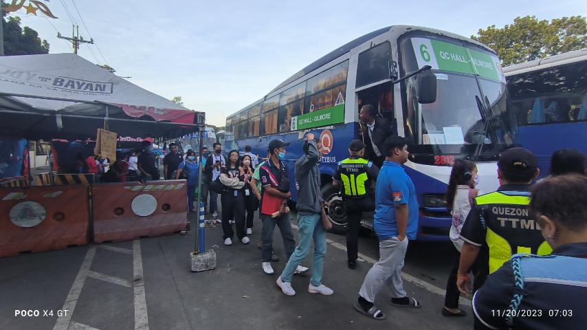 May mga nakaantabay ng QC Bus sa harapan ng National Housing Authority na command post ng Traffic and Transport Management Department.