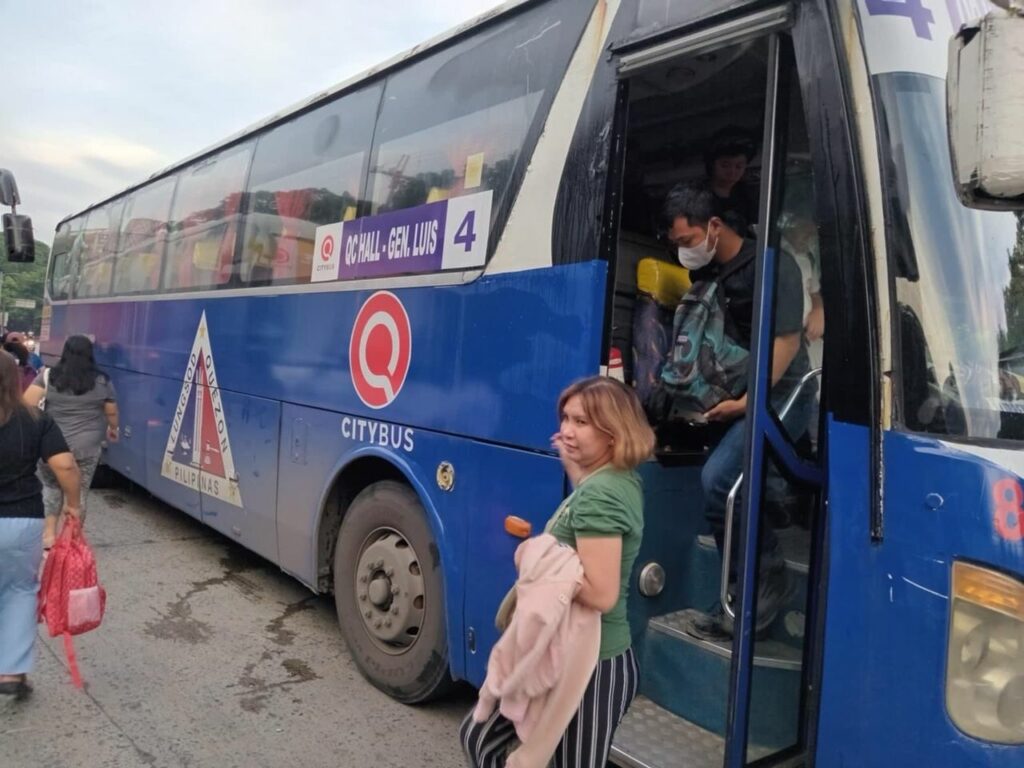 Nakaantabay ang QCity Bus Sevice ng pamahalaang Lungsod Quezon upang magbigay ng libreng sakay sa mga pasahero na maaapektuhan ng tigil-pasada ng grupong Manibela.