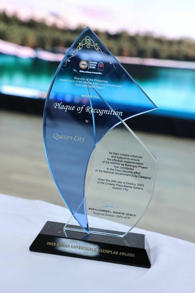 Kabilang dito ang Positive Recommendation mula sa Commission on Audit, Urban Governance Exemplar para sa HAPAG Program ng Department of the Interior and Local Government, QC University Recognition para sa pakikipagtulungan sa ng Center for Urban Agriculture & Innovation, at Agribusiness and Marketing Assistance Service Recognition para sa Kadiwa program ng Department of Agriculture.