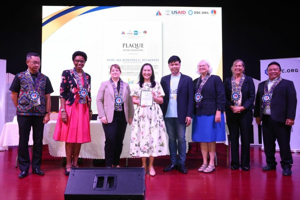 Dumalo si Mayor Joy Belmonte sa selebrasyon kasama si United States Agency for International Development (USAID) Office of Education Deputy Director Yvette Malcioln at Education Development Officer SVP/Director, International Development Division, Nancy Devine.