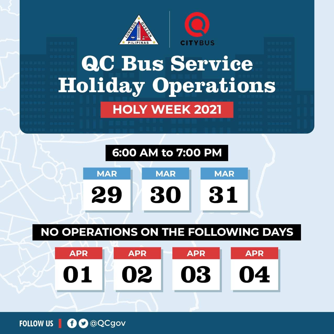 QCitizens! Tingnan ang schedule ng ating QC Bus Service para sa libreng sakay ngayong holy week: