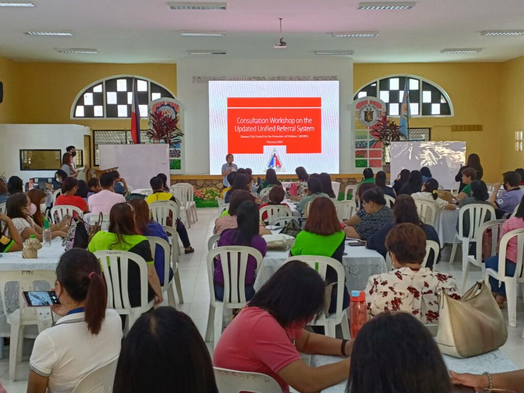 Nagsagawa ang QC Council for the Protection of Children ng Consultation Workshop tungkol sa Unified Referral System for Children at Risk and Children in Conflict with the Law sa P. Bernardo Elementary School.