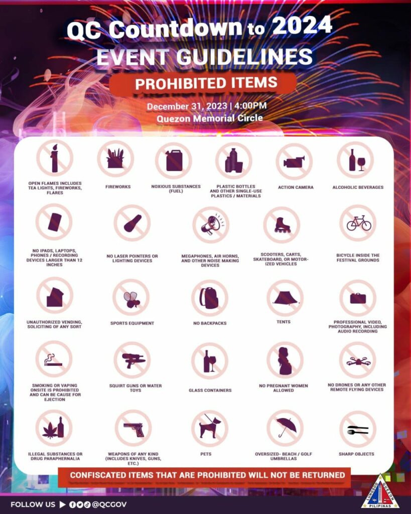 Para maging maayos at ligtas ang ating kasiyahan, narito ang ilang gabay sa mga kagamitang maaaring dalhin at hindi dalhin sa venue.