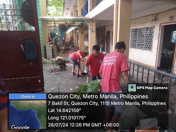 Nilinis at kinumpuni ng mga tauhan ng QC Engineering Department ang Masambong High School matapos ang pananalasa ng bagyong #CarinaPH at habagat sa Lungsod Quezon.