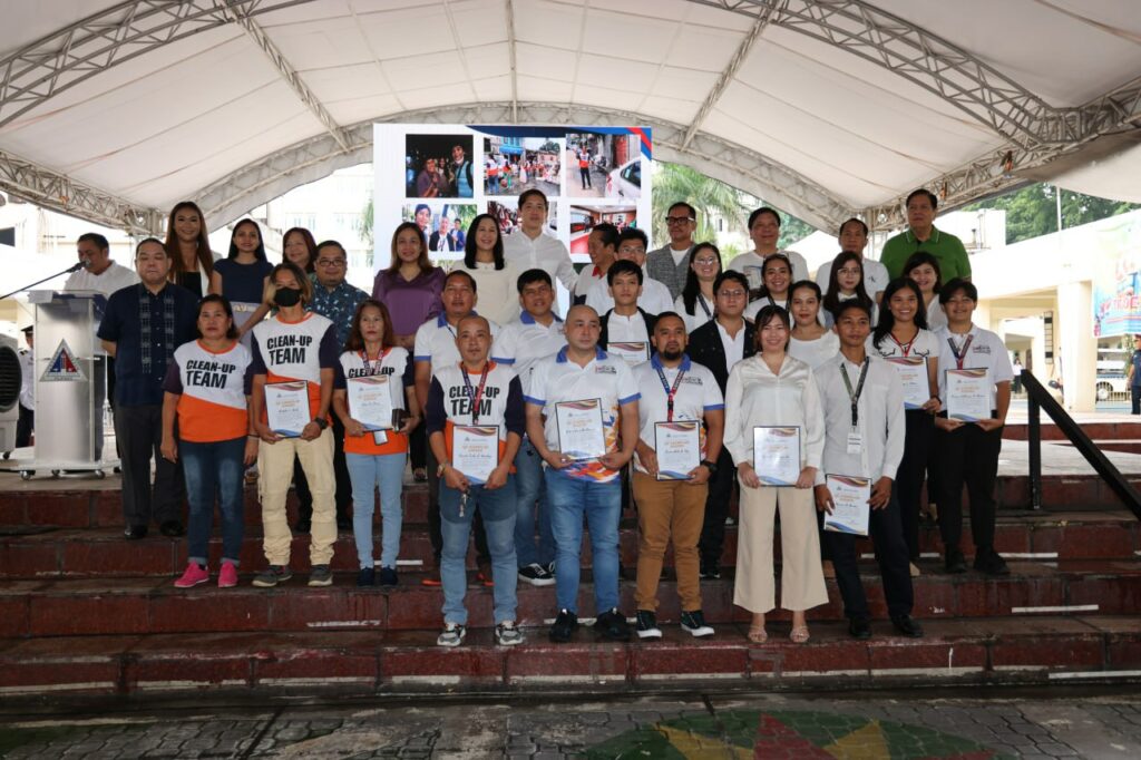 Iginawad nina Mayor Joy Belmonte at Vice Mayor Gian Sotto ang parangal sa mga empleyado ng Department of Sanitation and Cleanup Works of Quezon City para sa pagpapanatili ng kalinisan sa lungsod lalo na tuwing may bagyo.