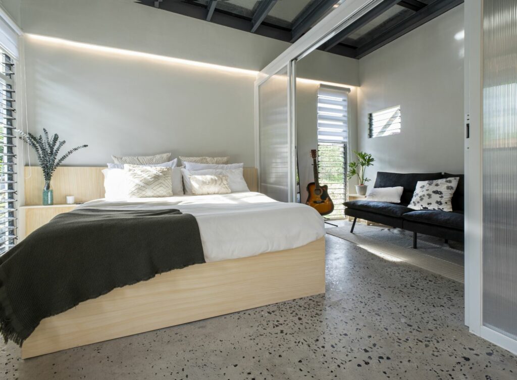 The model house showcases an aspirational aesthetic with large windows, high ceilings, and sustainable, quality materials never before seen in affordable housing.