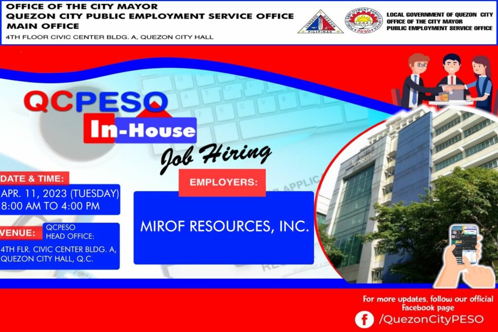 Katuwang ng Quezon City Public Employment Service Office ang Mirof Resources, Inc. sa proyektong ito.