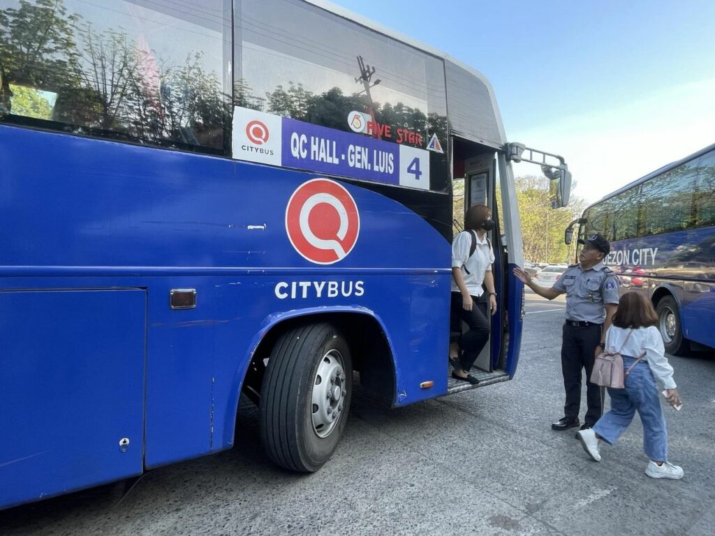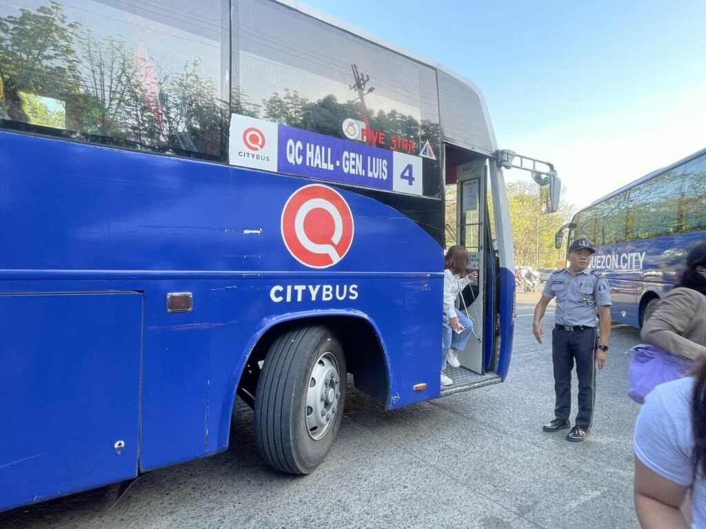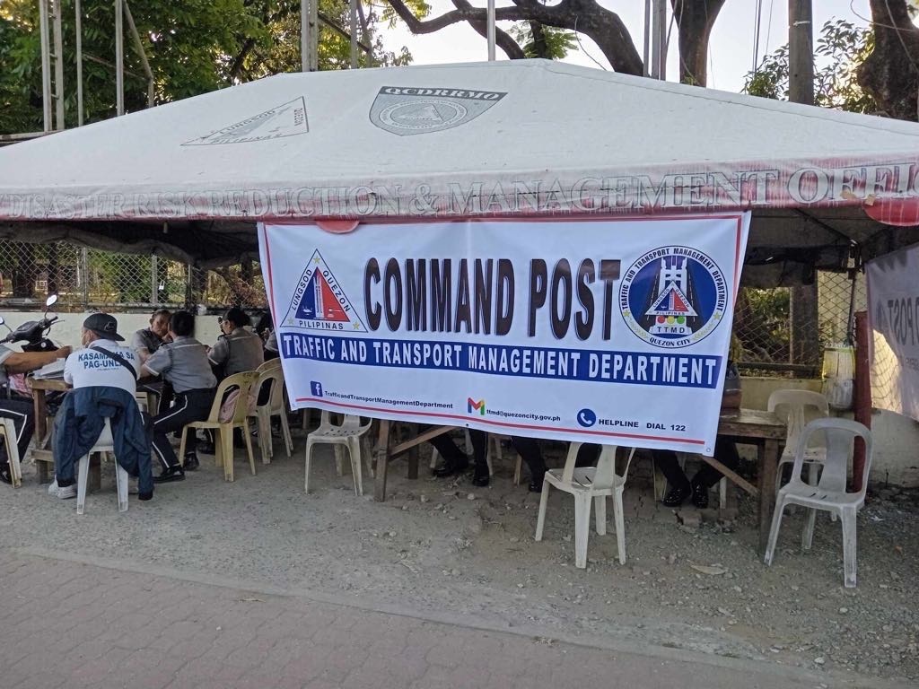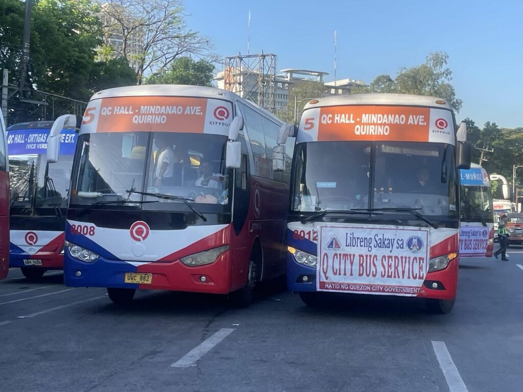 May mga nakaantabay na QCity Bus sa harapan ng National Housing Authority na command post ng Traffic and Transport Management Department (TTMD).