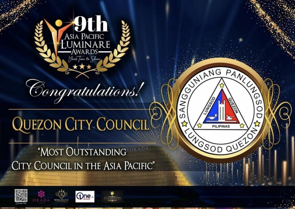 Umani ng sari-saring parangal ang ating Quezon City Council sa ginanap na Asia Pacific Luminare Awards.