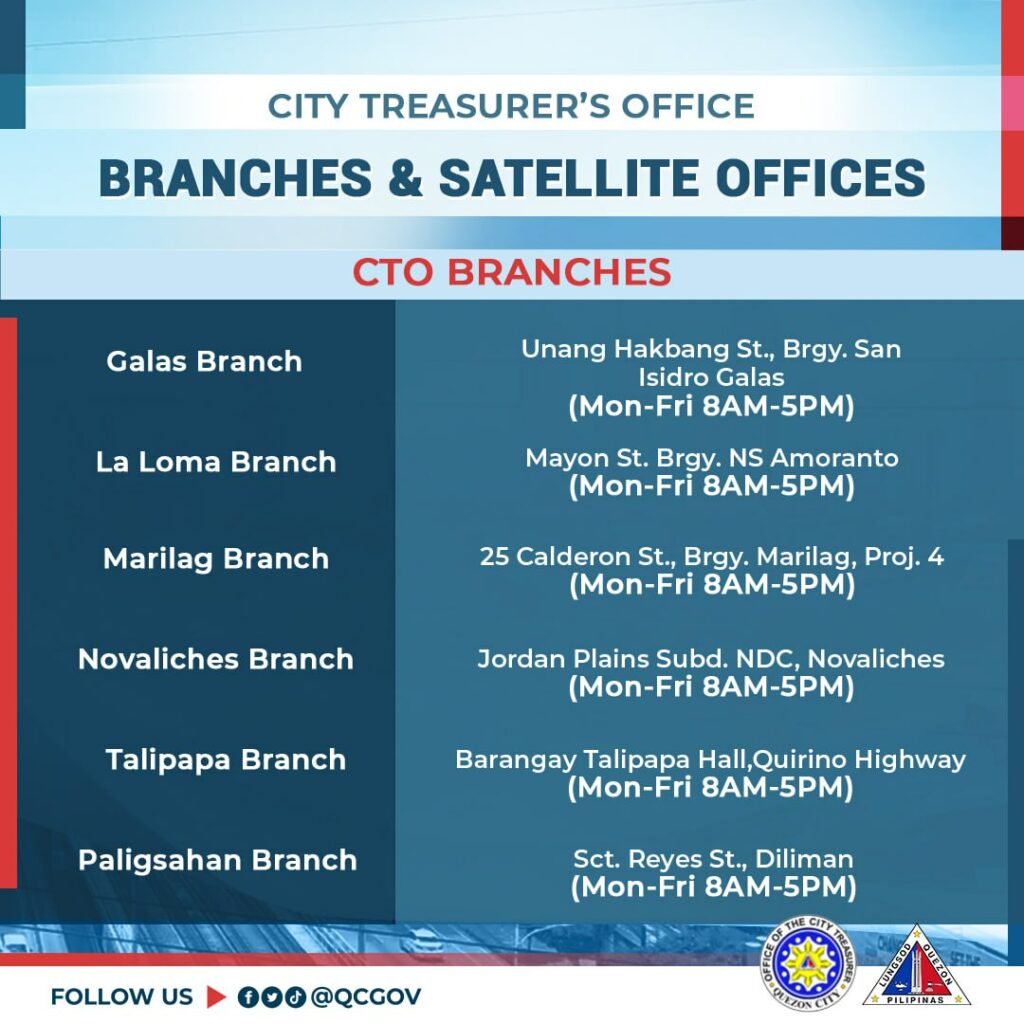 Maaaring magbayad ng amilyar sa City Hall, o sa mga City Treasurer’s Office (CTO) branches at satellite offices:
