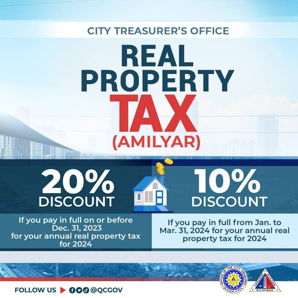 QCitizens, magbayad nang maaga para maka-DISKWENTO sa inyong REAL PROPERTY TAX (amilyar)!