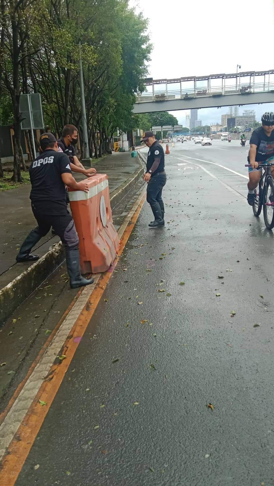Ilang plastic barriers sa bike lanes ang tumumba o di kaya ay nawala sa pwesto dahil sa malakas na hangin at bahang idinulot ng dumaang bagyong #PaengPH.