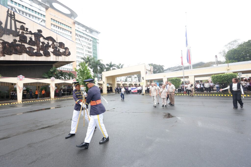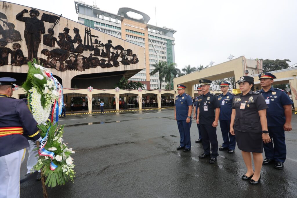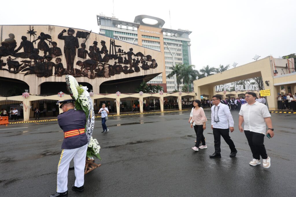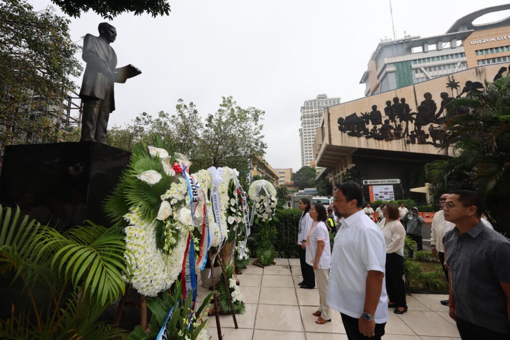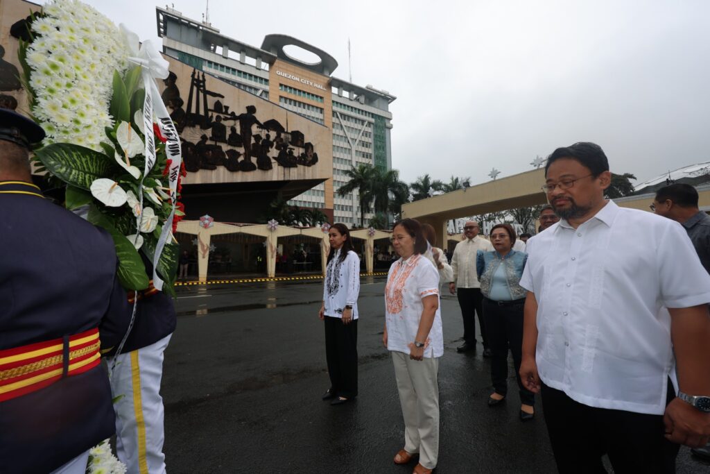 Nanguna sa pag-alay ng bulaklak sina Coun. Eric Medina, National Historical Commission of the Philippines QMC Senior Curator Janice Tambo, Assistant City Administrator for Operations Alberto Kimpo, at Chief of Staff Rowena Macatao.