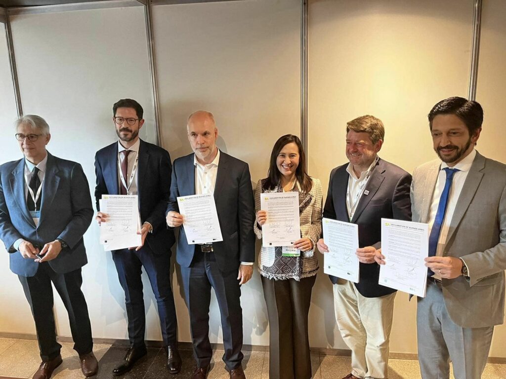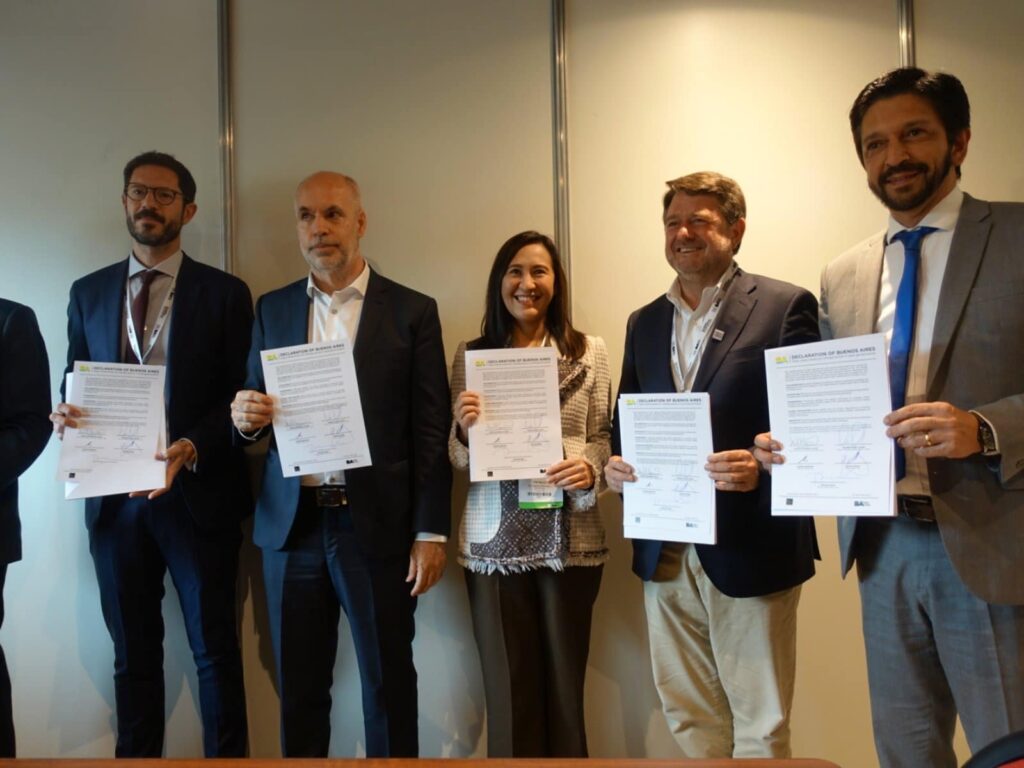 Alongside Mayor Joy were the Mayor of Buenos Aires Horacio Rodríguez Larreta, Governor of Santiago Metropolitan Region Claudio Orrego Larraín, Mayor of Sao Paulo Ricardo Nunes, and Open Government Partnership Deputy Director Rudi Borrmann.