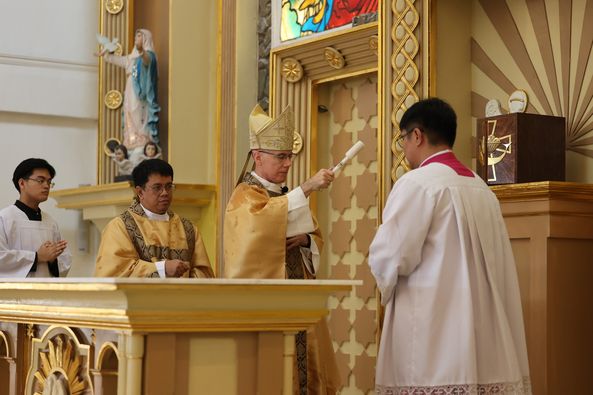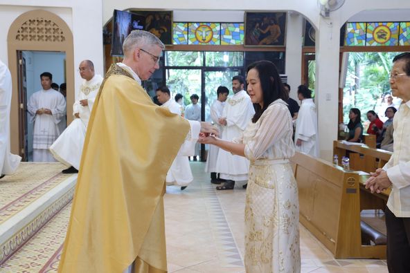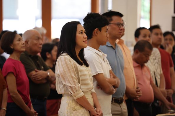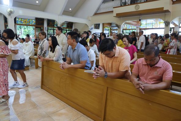 Nag-alay ng dasal si Mayor Joy Belmonte at kanyang pamilya sa fiesta mass ng St. Michael the Archangel Parish, na pinangunahan ni Apostolic Nuncio to the Philippines Most Reverend Charles John Brown.