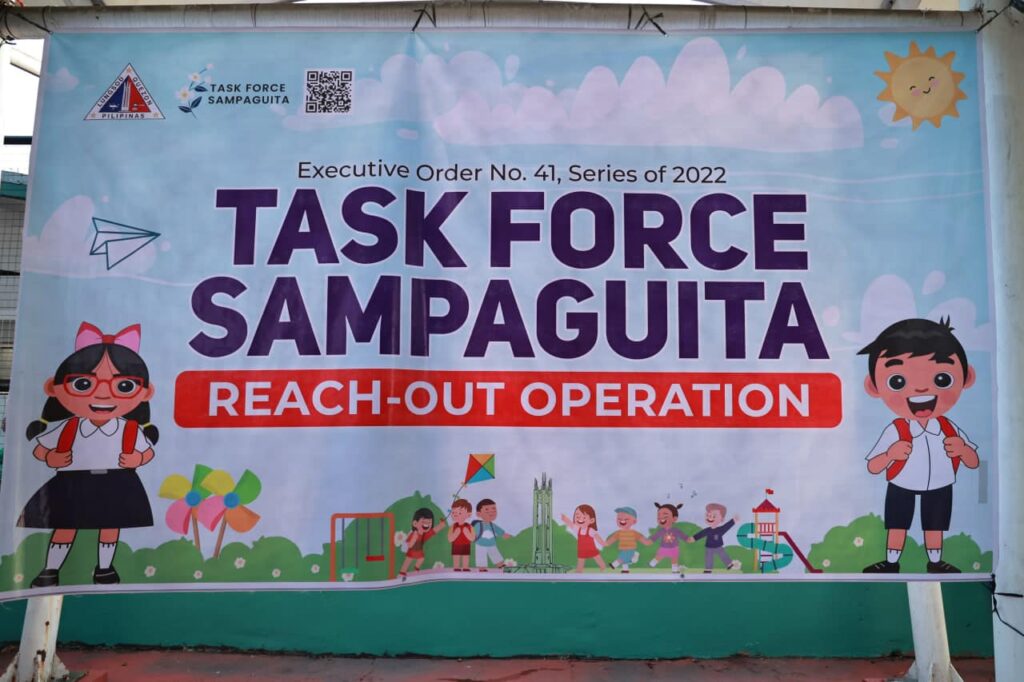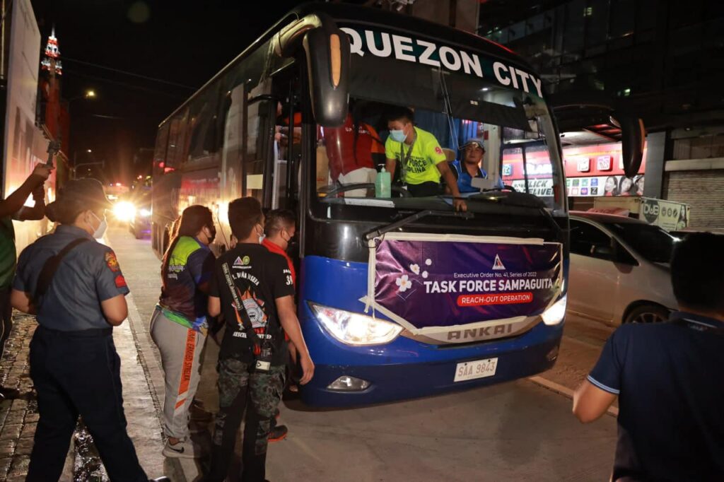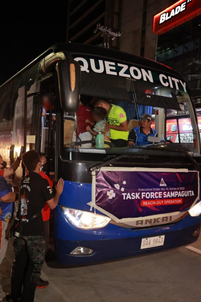 Alinsunod sa utos ni Mayor Joy Belmonte, sinuyod ng TF Sampaguita ang 36 na lugar sa anim na distrito ng QC para iligtas ang mga indibidwal at bata mula sa kapahamakan. Mahinahon silang isinama ng TF Sampaguita at dinala sa Quezon Memorial Circle para sa processing.