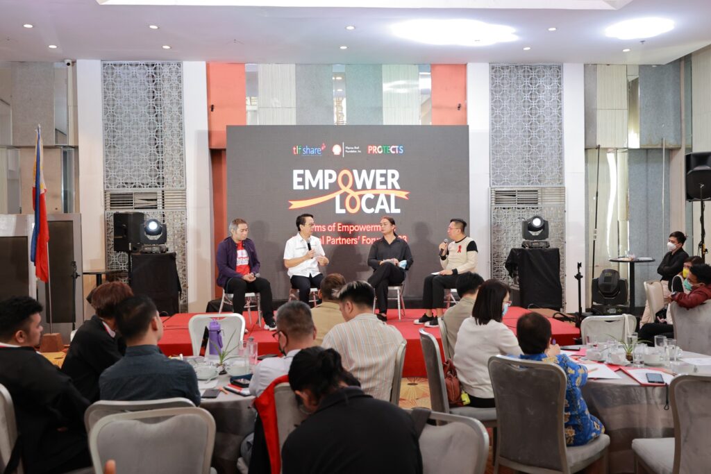 May be an image of 2 people, people standing, indoor and text that says 'tlf share® Tounderon.be PROT ECTS EMPOWER LOCAL Terms of Empowerment: hal Partners' Forum 2023 EMP EMPOWER LOCAL'