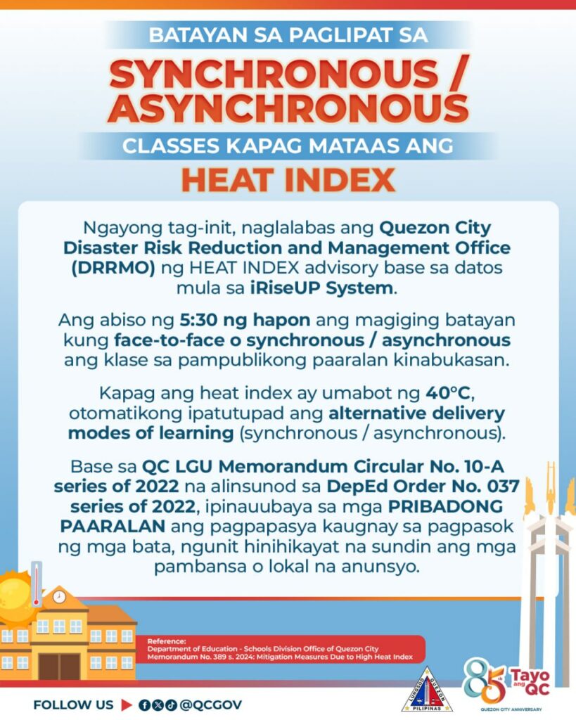 Naglabas ng memorandum sa mga eskwelahan ang Division of City Schools – Quezon City, alinsunod sa memorandum ng DepEd Philippines tungkol sa matinding init ng panahon.