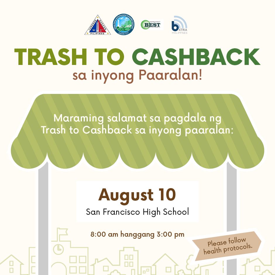 Eco-warriors, get ready dahil ang #TrashtoCashback ay susugod na sa San Francisco High School sa Bago Bantay, Brgy. Sto. Cristo ngayong August 10, 2022.