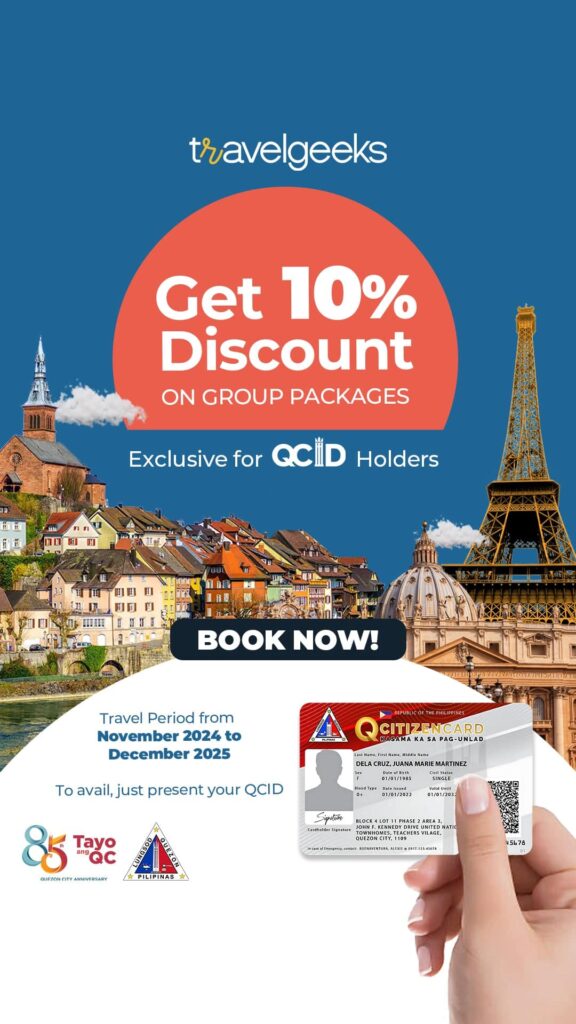 Travel Geeks is offering an exclusive 10% off travel discount for group packages! Book now and just present your QC ID to avail the promo.