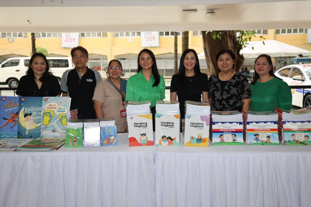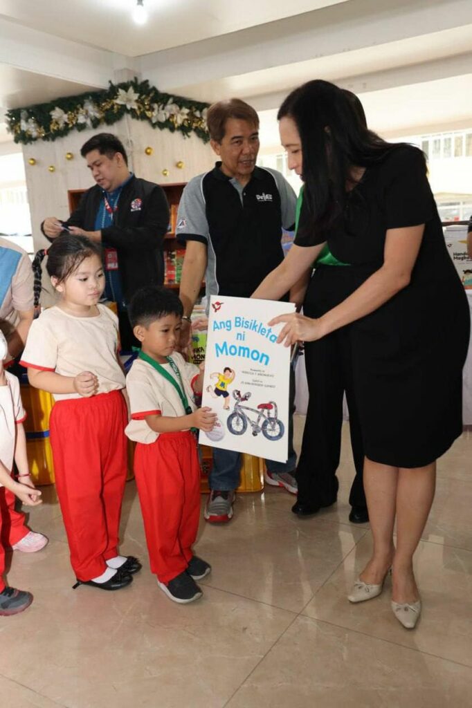 Ang mga libro at story book ay malugod na tinanggap nina Schools Division Office Superintendent Carlene Sedilla, Social Services Development Department OIC Eileen Velasco, at QC Public Library OIC Mariza Chico mula kay Mayor Joy Belmonte.