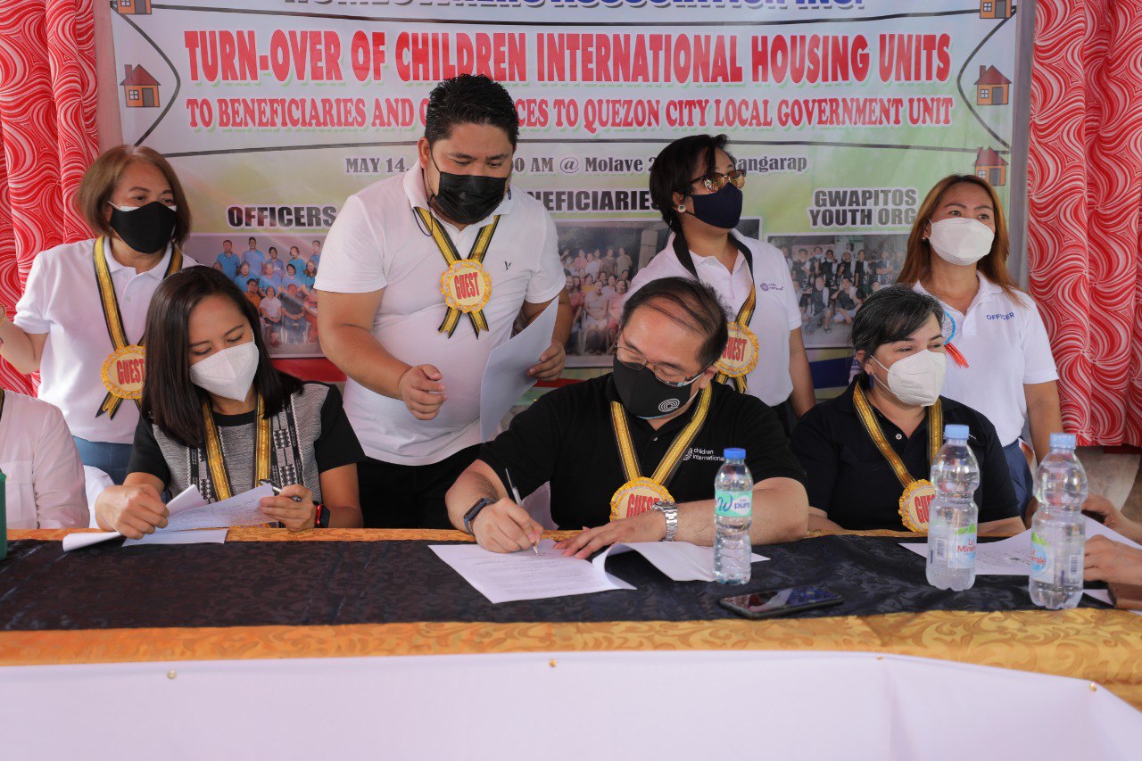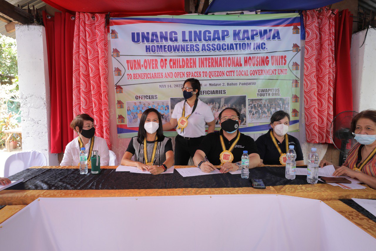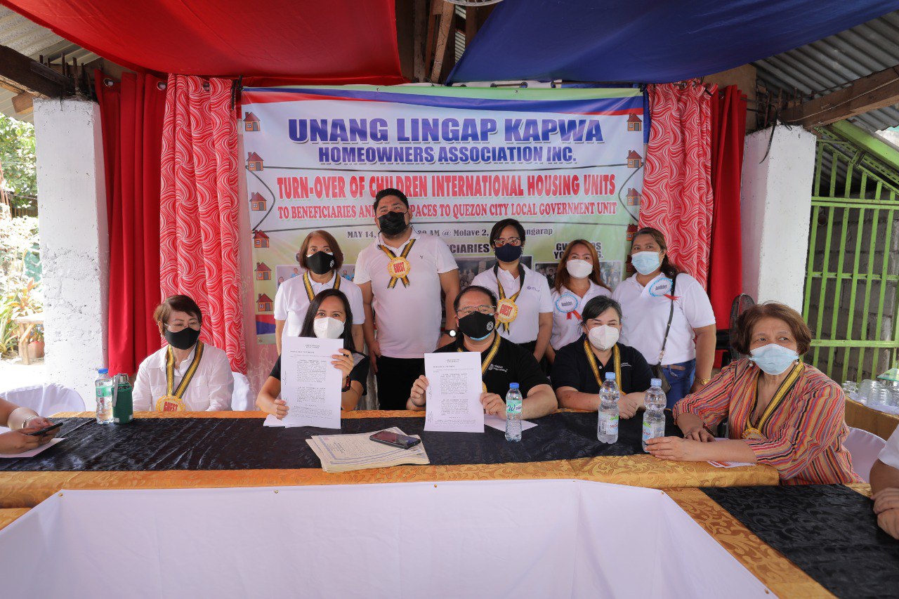 Lubos na nagpapasalamat ang pamunuan ng QC LGU sa Children International sa ipinagkaloob nilang housing units para sa mga benepisyaryo ng programa, at open spaces naman para sa lokal na pamahalaan. Makakaasa po kayo na pangangalagaan at pananatilihing maayos at kapaki-pakinabang para sa QCitizens ang inyong donasyon.