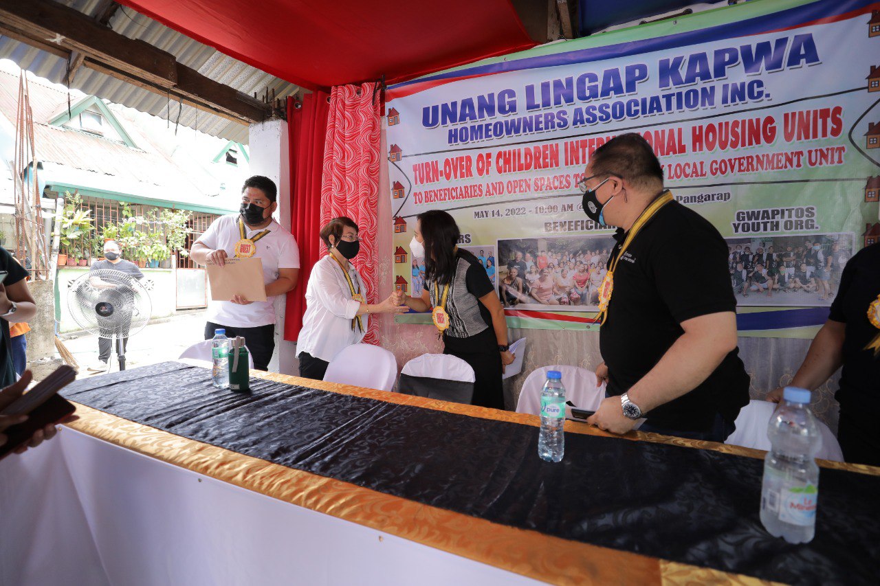 Pormal nang nailipat sa 66 na pamilyang benepisyaryo ang titulo ng housing units mula sa Children International sa Damong Maliit, Bgy. Nagkaisang Nayon.