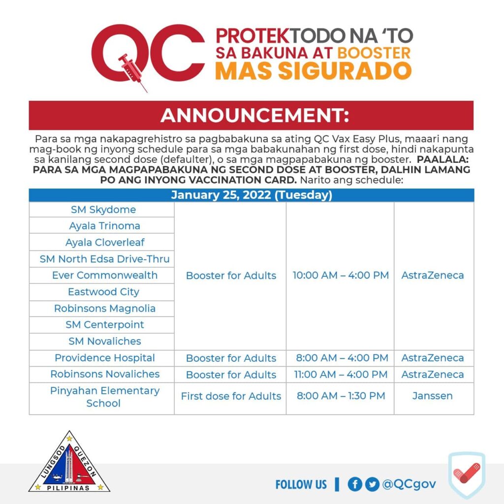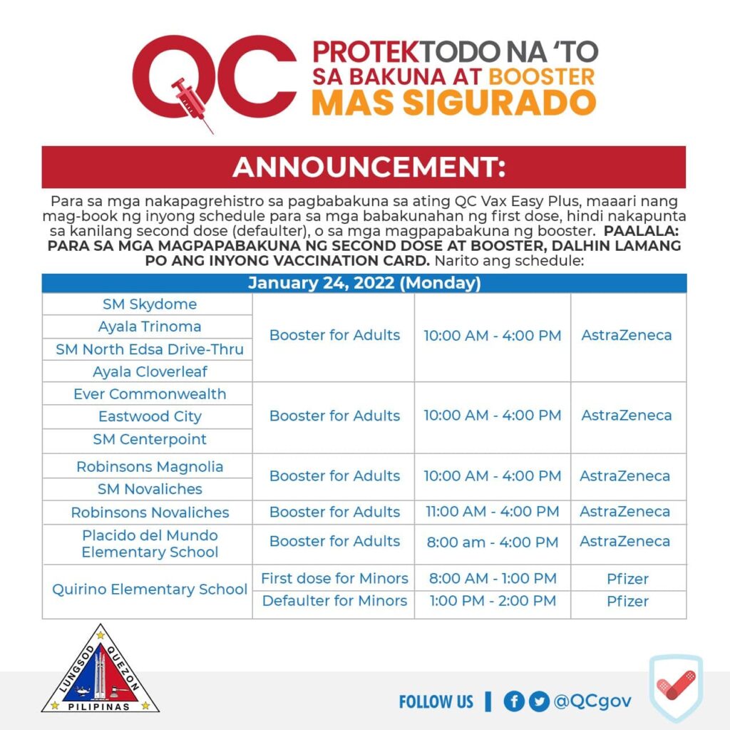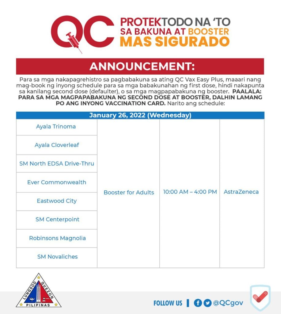 Para sa magpapabakuna ng booster, dalhin lang ang valid ID at #QCProtekTODO Vaccination Card.