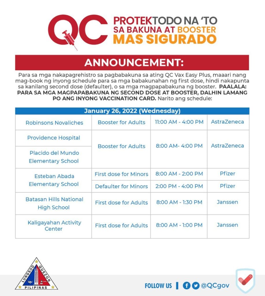 Magrehistro lang sa QC Vax Easy Plus (https://qceservices.quezoncity.gov.ph/qcvaxeasy) at pumili sa vaccination sites at schedule.