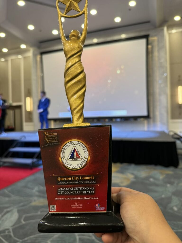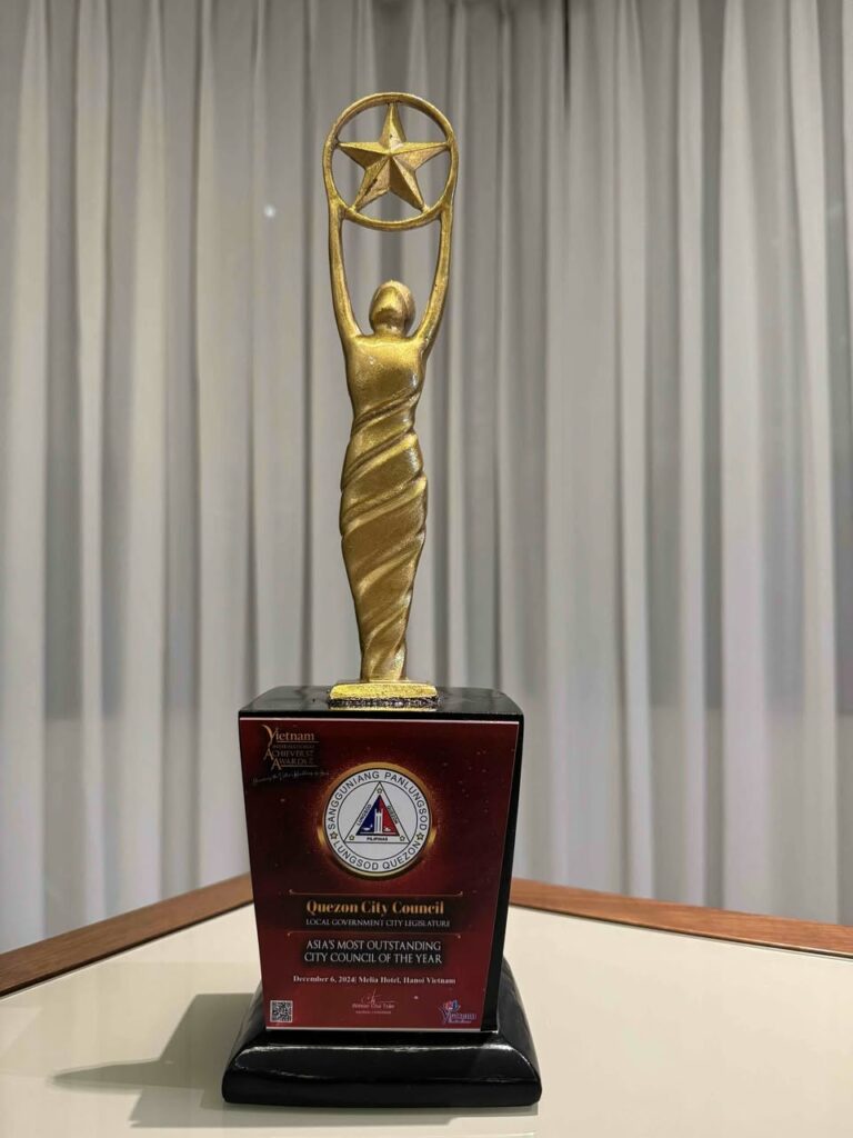 Itinanghal bilang Asia’s Most Outstanding City Council of the Year ang Quezon City Council.
